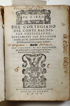 Castiglione Baldassarre (1478-1529) Il libro del Cortegiano... In Venezia, apresso Gabriel De Ferrari, 1560