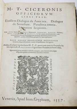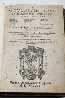 Cicerone Marco Tullio (106-43 a.C.) Officiorum libri tre Venezia, Gryphium, 1557 Familiarum Epistolarum Commentarum Venezia, [..]