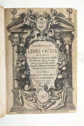 Prima edizione dell'opera più importante dell'illustre matematico, circa il funzionamento di menzionato strumento di misurazione del tempo. Nello stesso anno, Clavio collaborò in modo decisivo all'epocale riforma gregoriana del calendario tuttora in uso