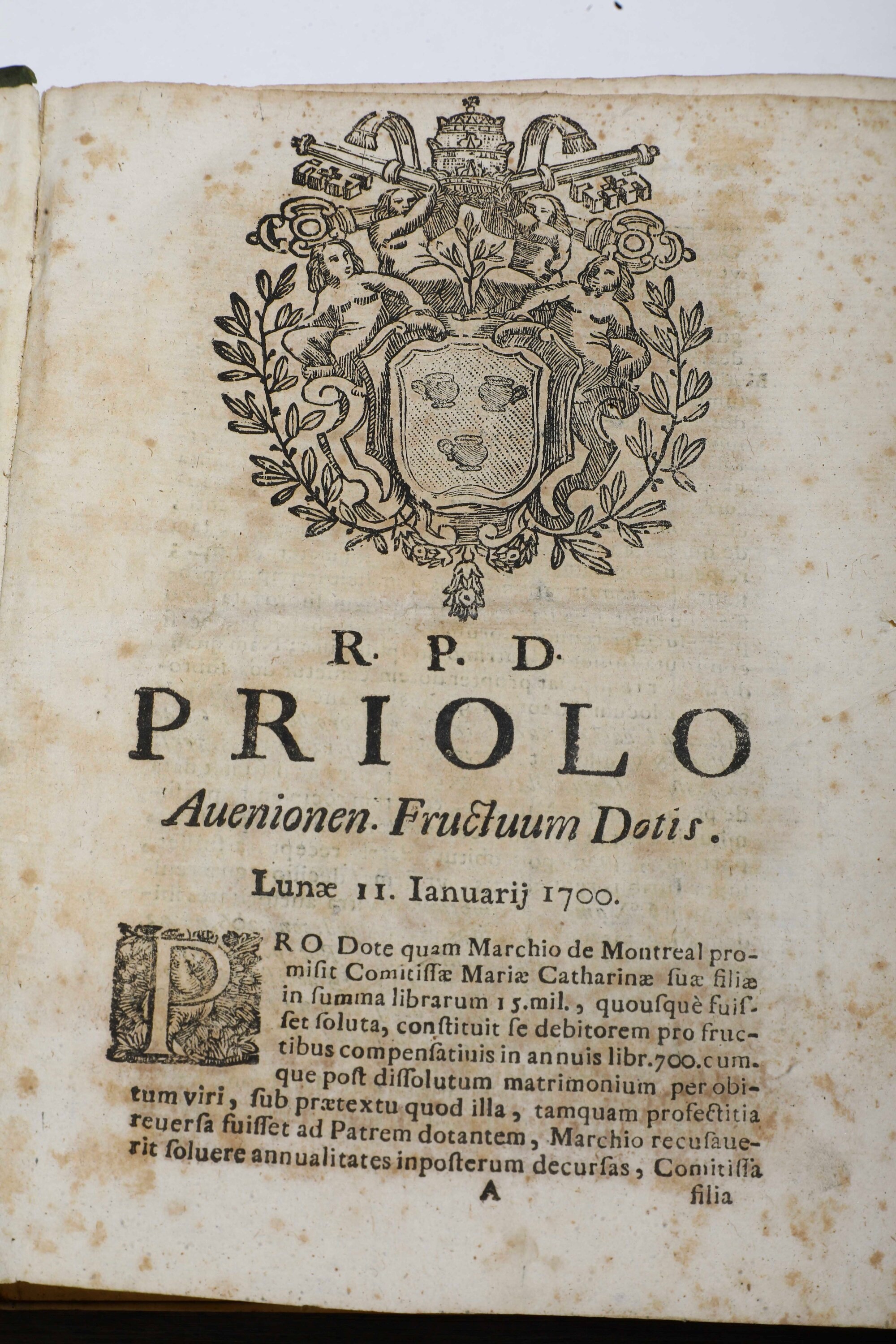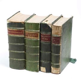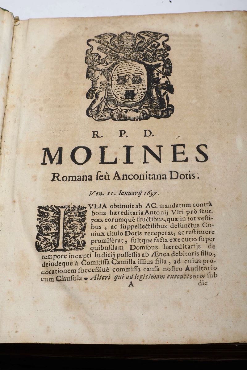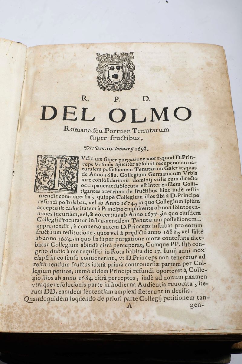 Quattro voll. in-4° (cm 25,8x18). Frontespizio con stemma di papa Innocenzo XII presente solo nel volume del 1698. Legatura in piena pelle verde con tassello impresso in oro con titolo e anno (difetti); ex libris al contropiatto.