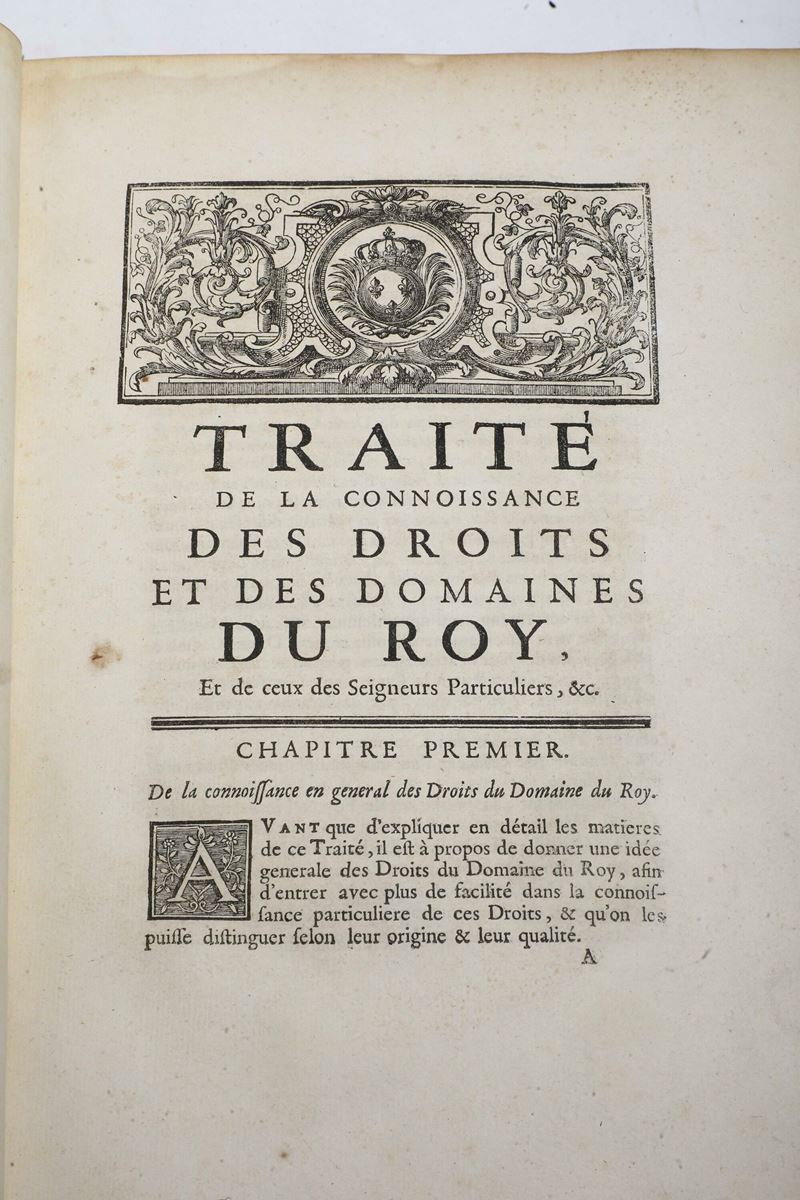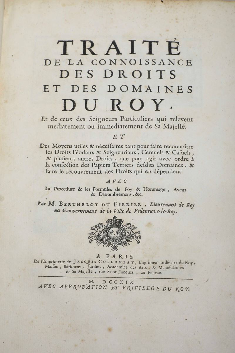Du Ferrier Berthelot Traitè de la connoissance des droits et des domaines du Roy A Paris, Jaques Collombat, 1719