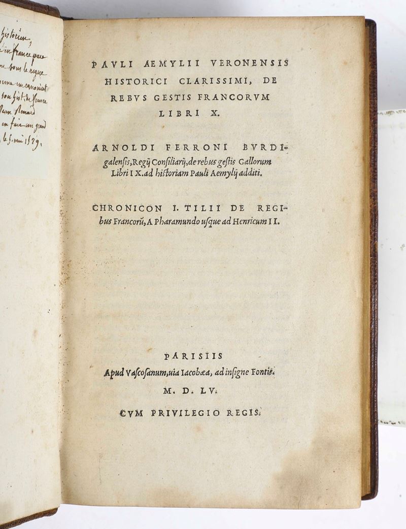 Emili Paolo (1455-1529) De rebus gestis francorum libri X.. Parisiis, apud Vascosanum, 1555