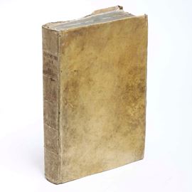 In-folio. Rilegatura del XVIII secolo in piena pergamena rigida, tagli azzurri (macchie, parziale distacco della legatura). Bel ritratto con ricca cornice architettonica al retro del frontespizio e alle prime carte. Qualche gora e bruniture