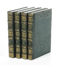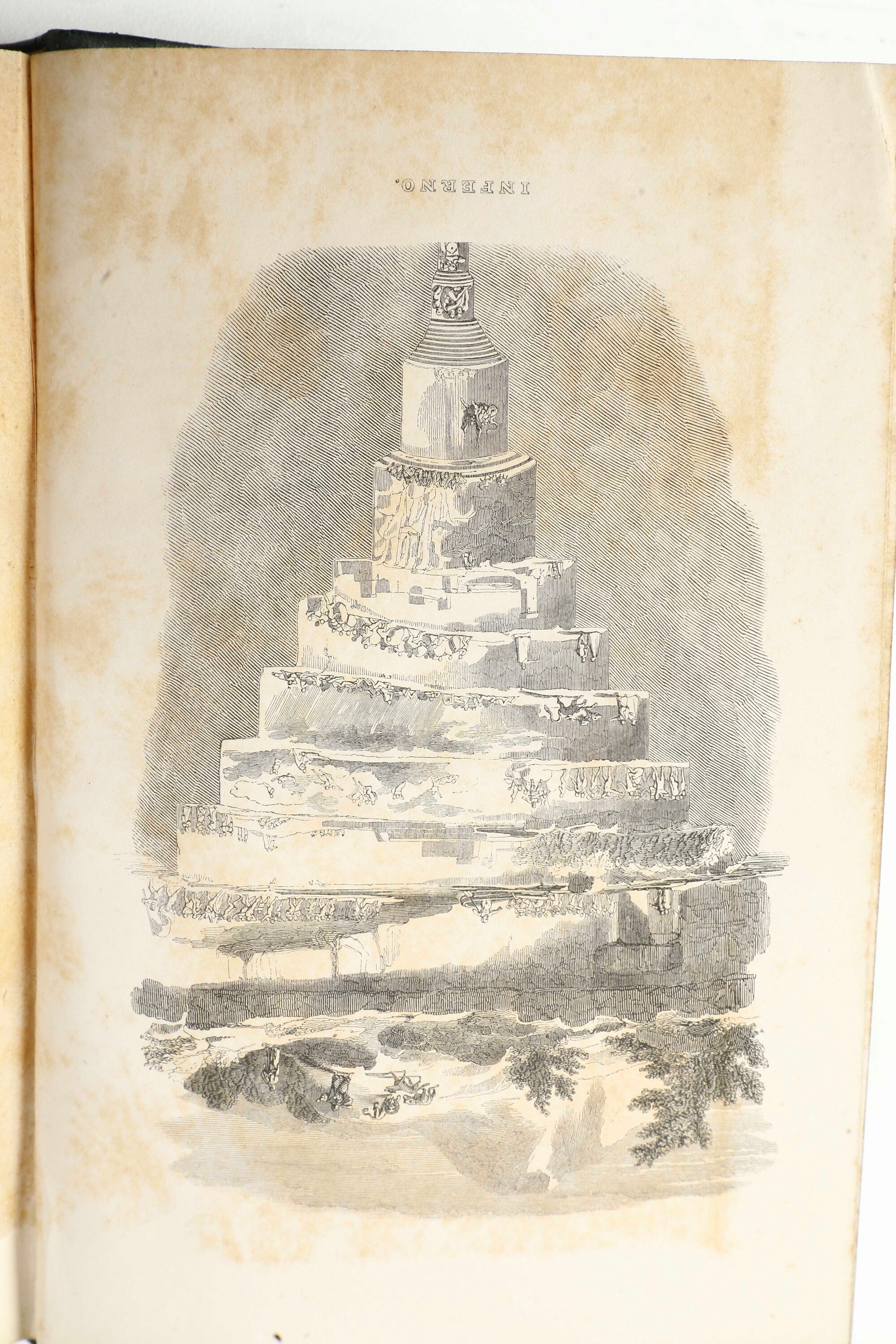 Quattro voll. in-4°. Belle rilegatura ottocentesca in mezza pelle verde, piatti rifasciati in tela percallina goffrata con motivi fogliacei, tagli verdi. Belle incisioni all'inizio di ogni volume: ritratto di Foscolo e cimitero di Chiswick (vol. 1), ritratto di Dante e Inferno (vol. 2), ritratto di Dante e Purgatorio (vol. 3), esterno e interno della tomba di Dante (vol. 4). Bell'esemplare con lievissime bruniture