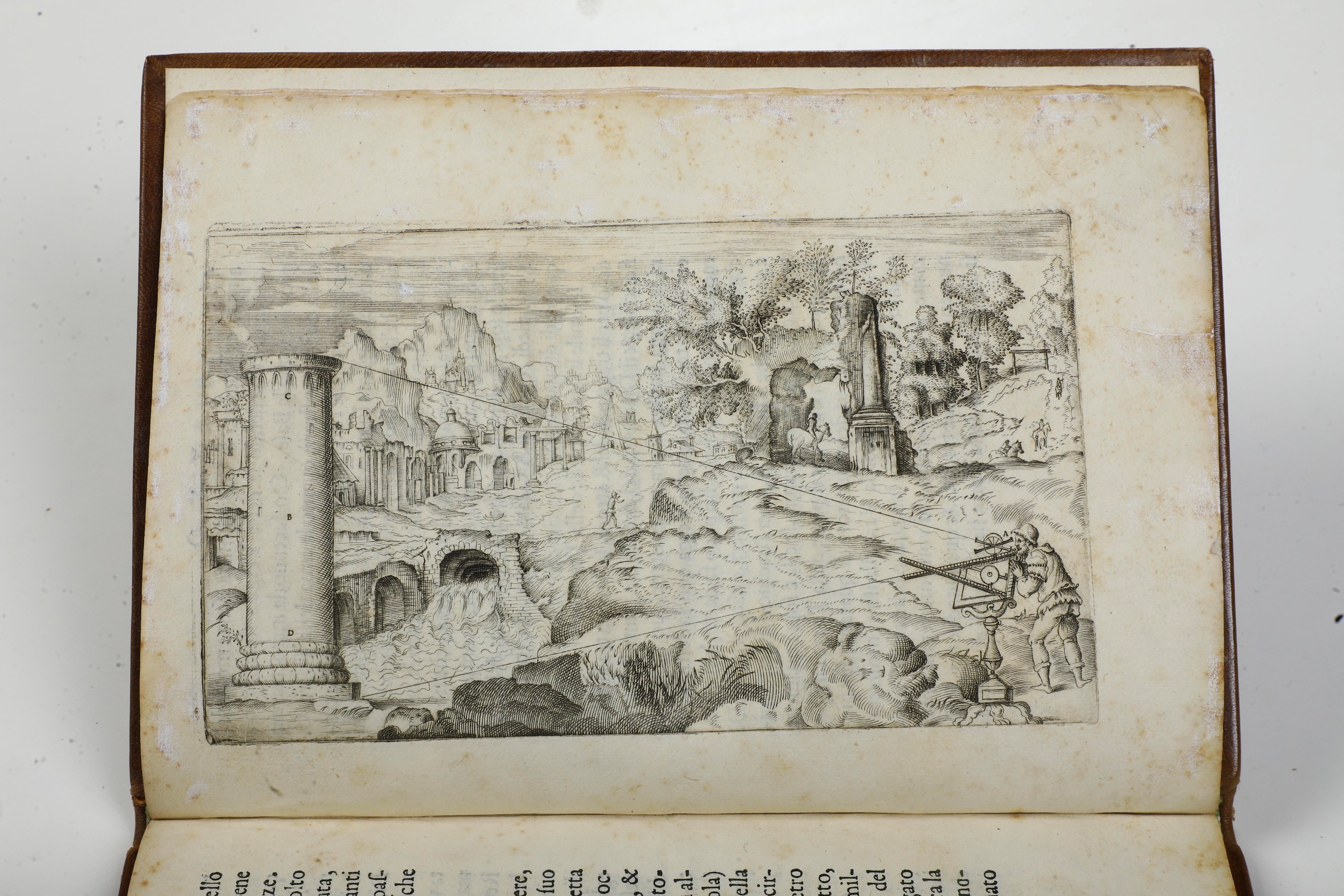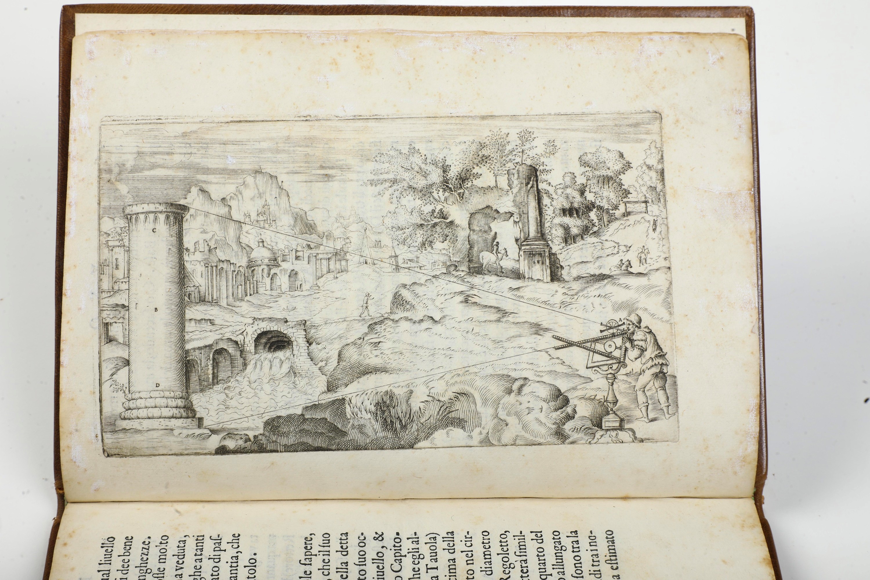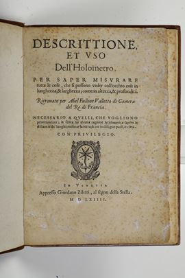 In-8°. (mm 227x163). 6 cc. nn. + 60 pp. num. Rilegatura moderna in piena pelle. Edizione ricca di incisioni esplicative dell'uso dell'olometro, molte a tutta pagine, capilettera e finalini xilografici. Foxing e lievi gore, margine superiore un po' corto.