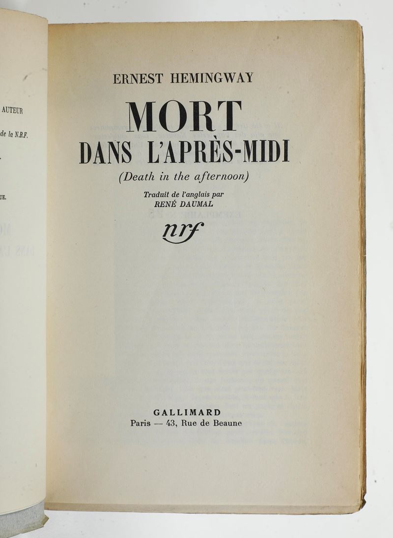 Hemingway Ernest (1899-1961) Mort dans l'après-midi - esemplare n. 25 di 38 Paris, Gallimard, 1938