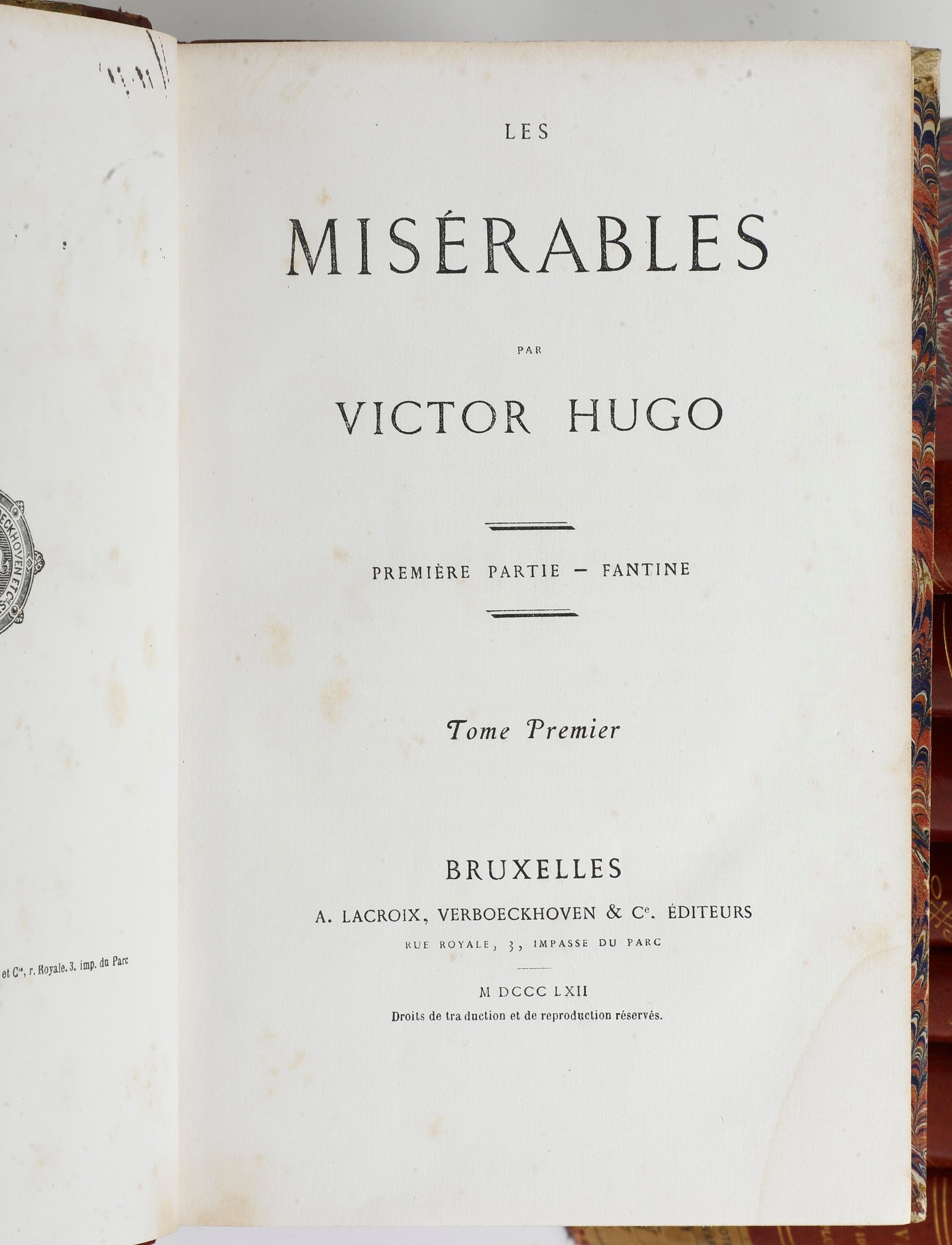 Hugo Victor (1802-1885) Les Misérables Bruxelles, A. LacroixVerboeckhoven & Ce, 1862