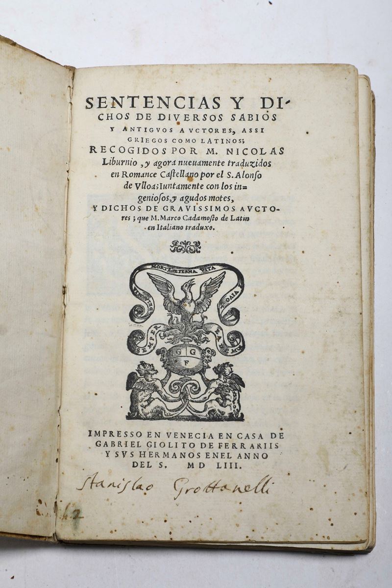 5. Liburnio, Sentencias y …, Venezia, Gabriele De Ferrariis, 1553. In-8°. Legatura in cartonato