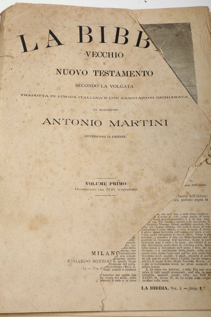 La Bibbia - Vecchio e Nuovo testamento secondo la volgata tradotta..da Monsignore Antonio Martini Milano, Sonzogno, 1889- [..]