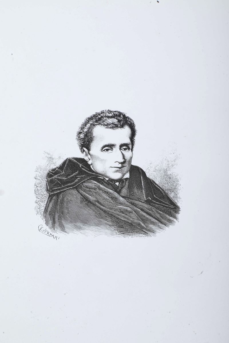 In-folio (cm 40x27,2). Antiporta con ritratto del Leopardi, fregi decorativi, alcune bordure in principio dei poemi e finalini con motivi tratti dagli affreschi delle Logge Vaticane di Raffaello. Legatura in tela rigida rivestita di carta. Esemplare marginoso con foxing lieve ma diffuso in diverse carte e sulla legatura.