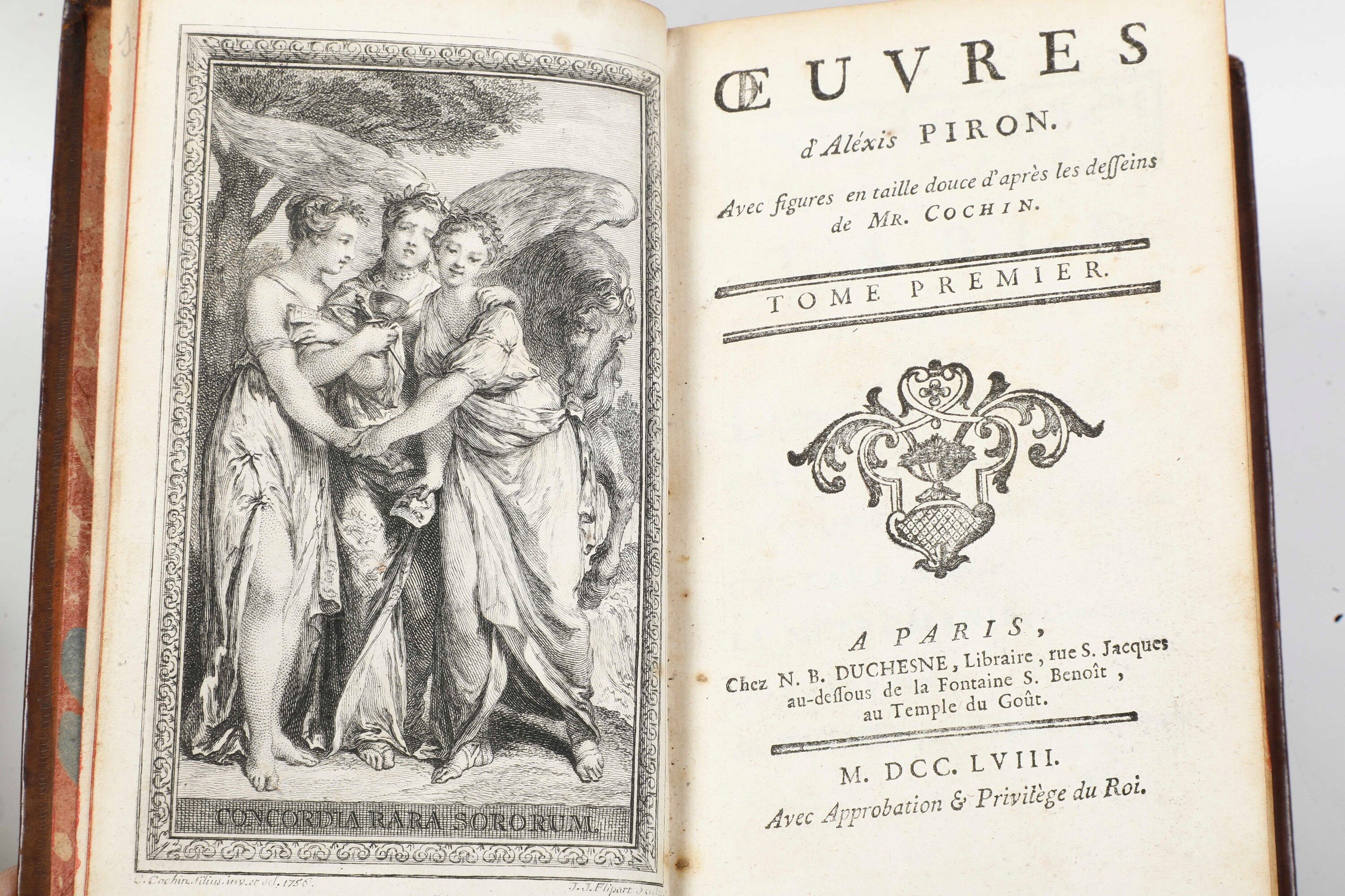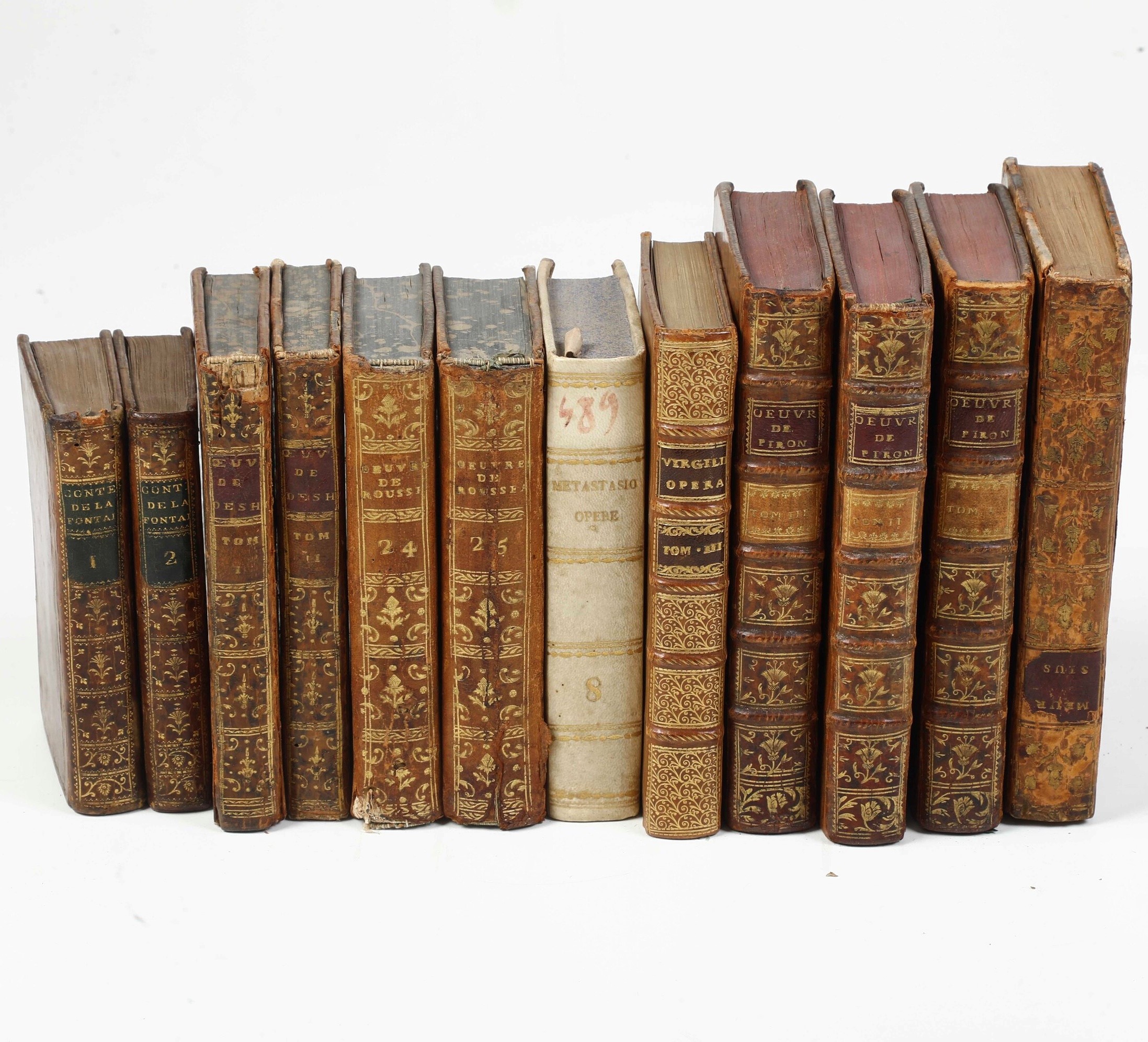 Piccolo formato, per lo più in-8° e due voll. in-12°. Rilegature in piena pelle del secolo XVIII, una in piena pergamena del XIX secolo (usure, alcune fenditure alle cerniere).