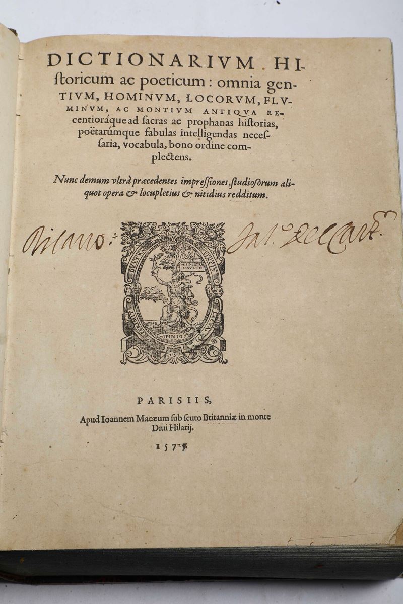 Lotto misto di quattro opere diverse Dictionarium Historicum ac Poeticum... Parisis Macaeum, 1575