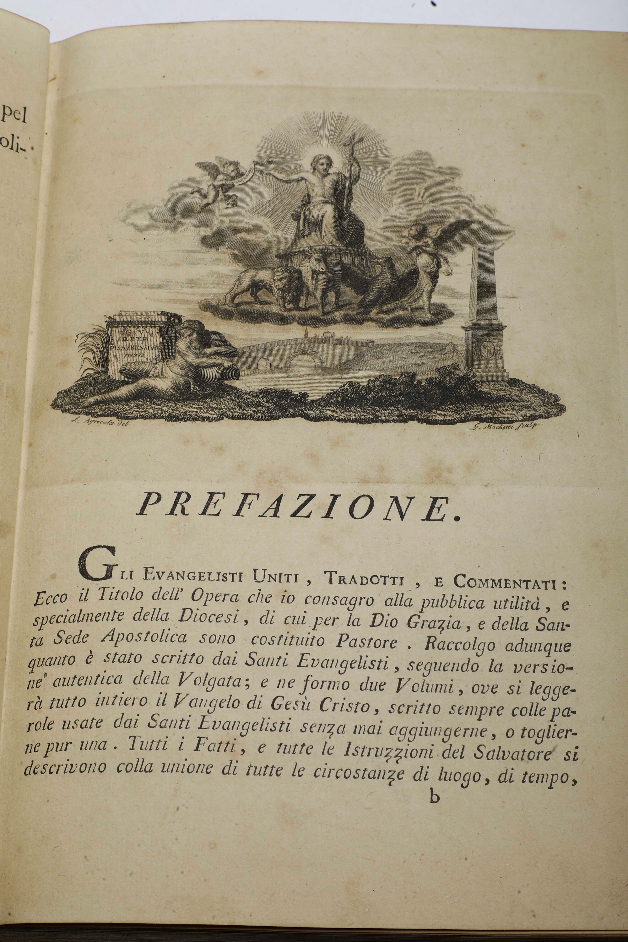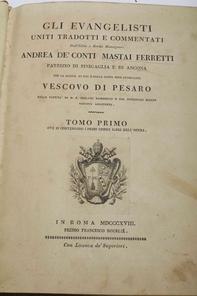 Mastai Ferretti Andrea (?-1822) Glie evangelisti uniti tradotti e commentati.. In Roma, presso Francesco Bourliè, 1818