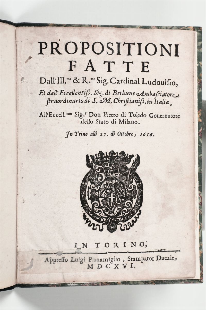 Mattei, Pietro / Cardinal Ludovisio Genealogia della Real Casa di Borbone da Feramondo sin ad Henrico IV il grande..In Venetia,Fontana,1625 / Propositioni fatte dall'ill e Rev.mo Sig.Cardinal Ludovisio..In Torino,Pizzamiglio, 1616