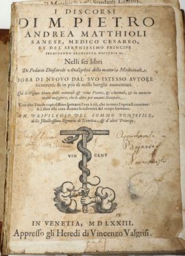 Matthioli Pietro Andrea (1501-1577) I discorsi.. In Venetia, appresso gli Heredi di Vincenzo Valgrisi, 1573
