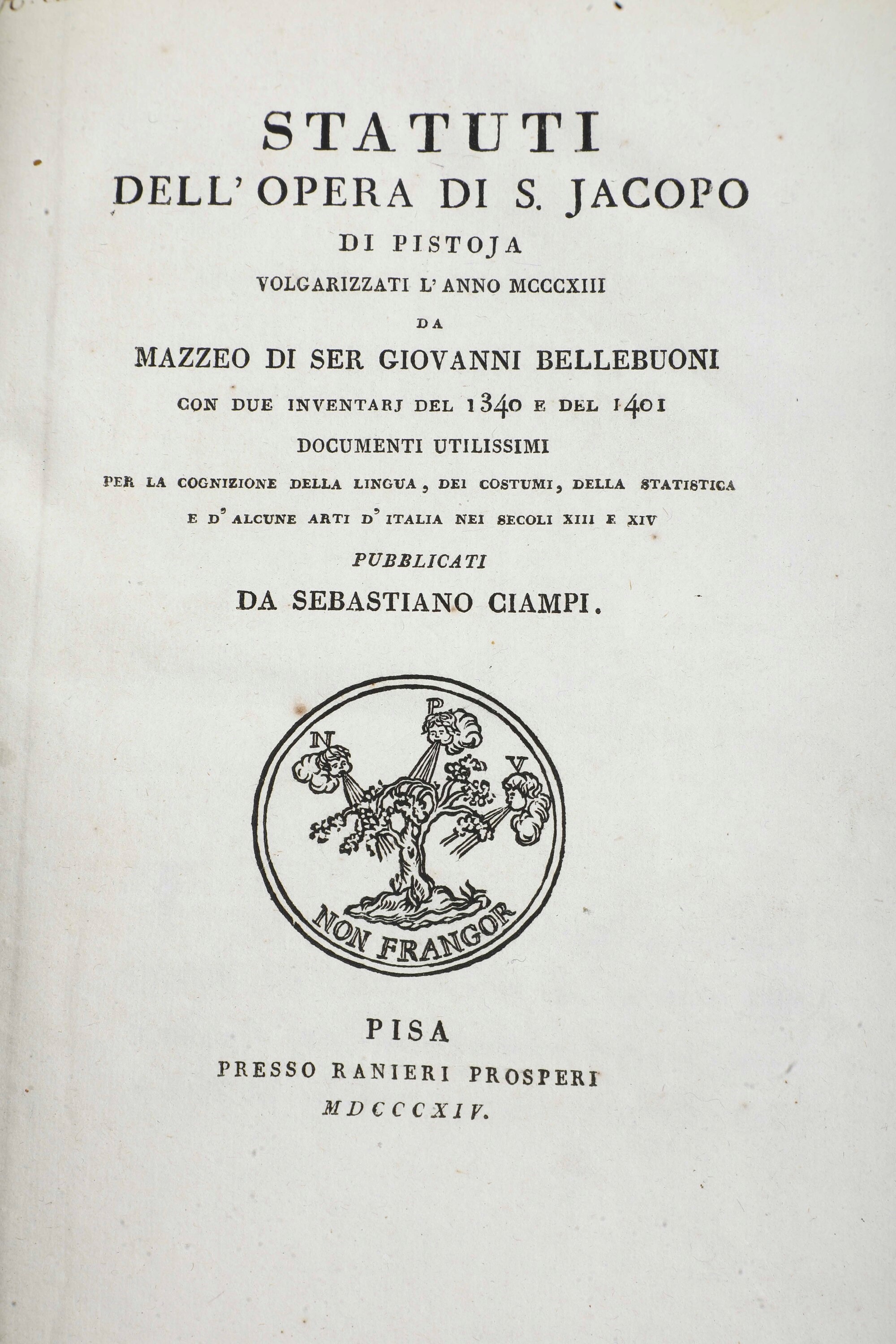 1. Mazzeo di Ser Giovanni Bellebuoni, Statuti dell'opera di San Jacopo, Pisa, Ranieri, 1814;