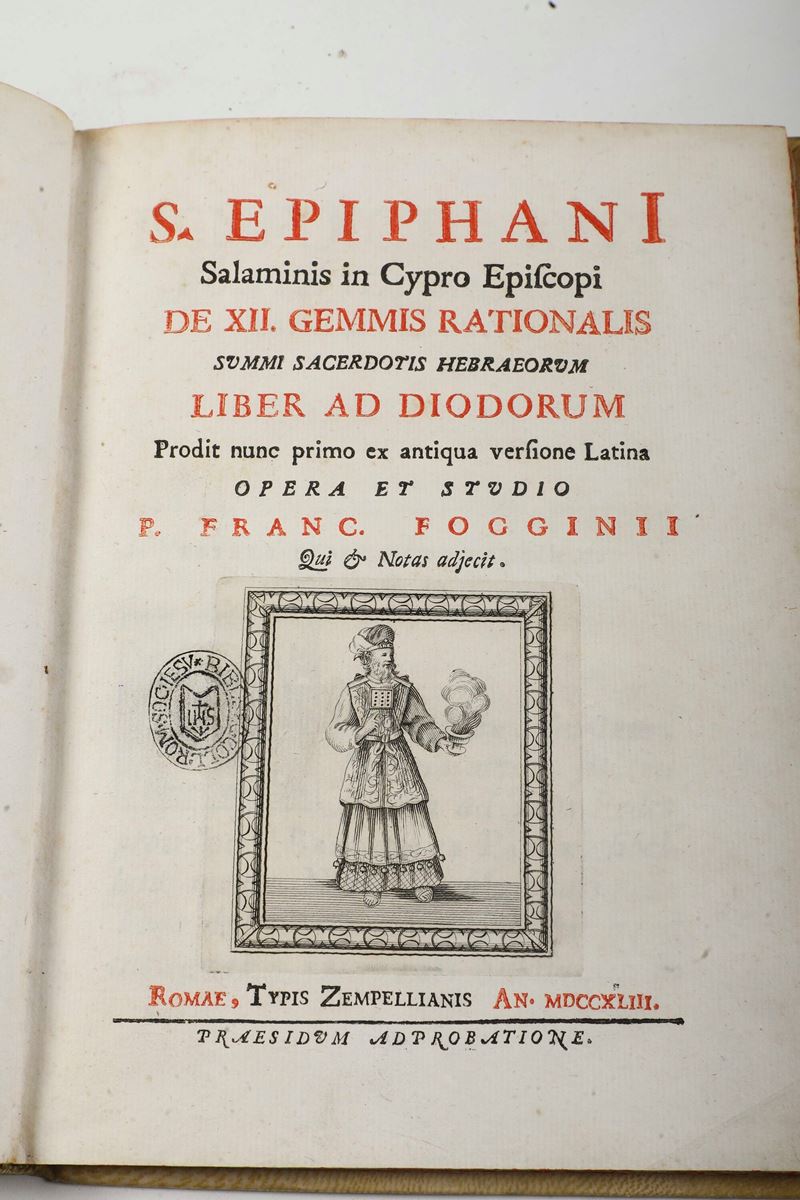 - Foggini, Francesco, S. Epiphani...Roma, Typis Zempellianis, 1743;