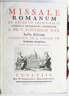 Missale Romanum ex decreto sacrosanti Concilii Tridentini.. Venetiis, Ex Typographia Balleoniana, 1772