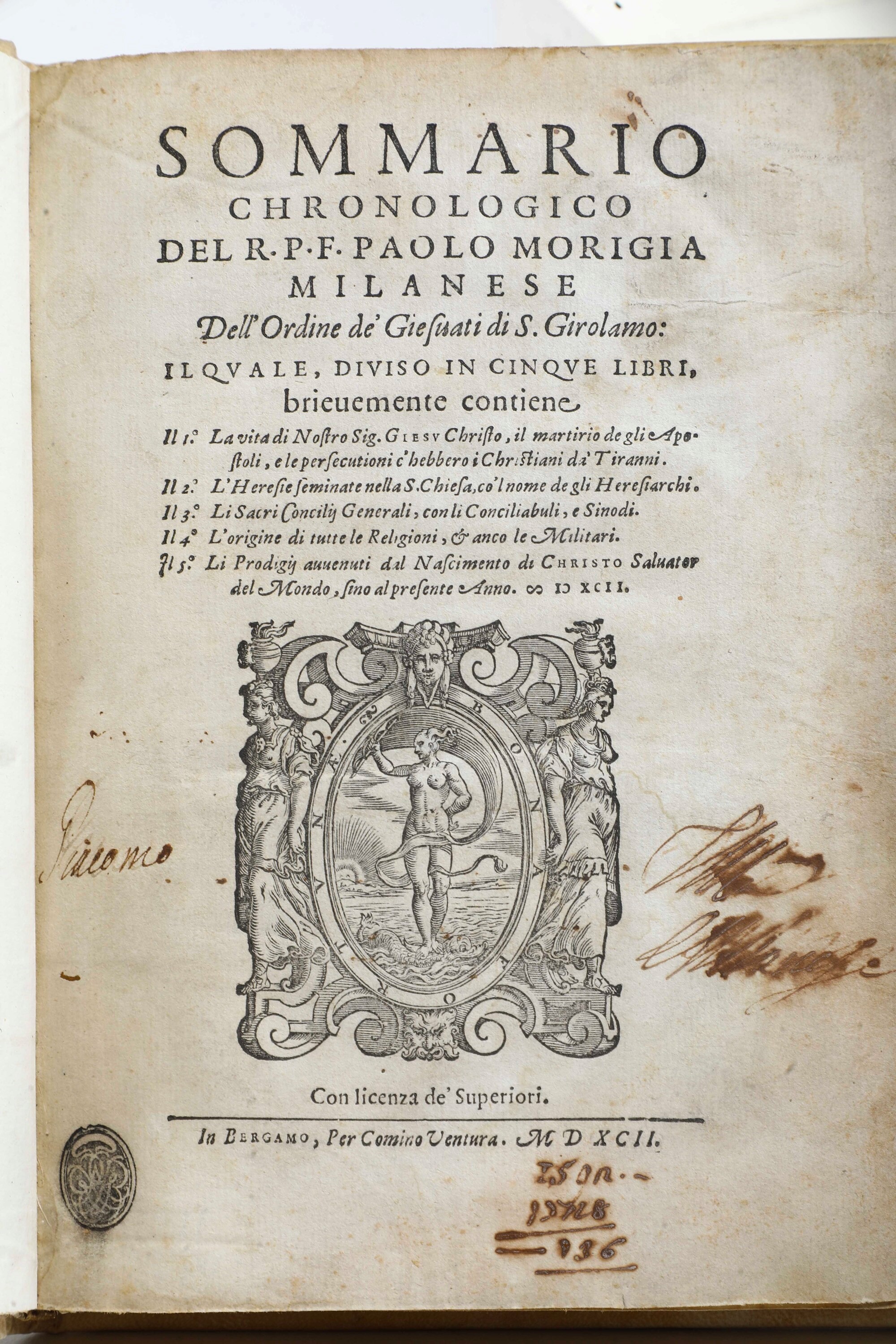 Morigia Paolo (1525-1604) Sommario cronologico dell'Ordine dei frati di San Gerolamo In Bergamo, per Comino Ventura, 1592 [..]
