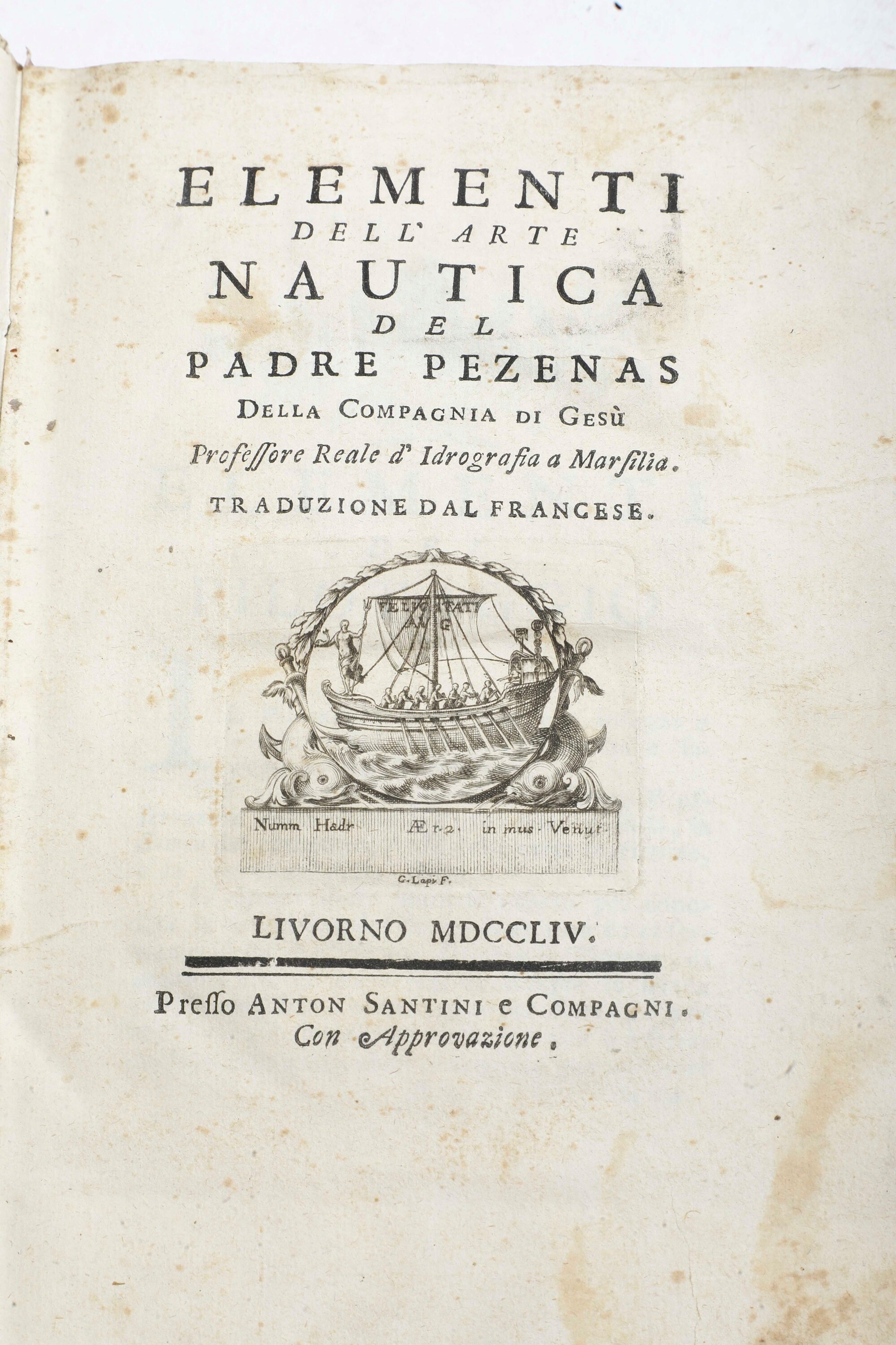 Padre Esprit Pezenas (1692 - 1776) Elementi dell'arte nautica.. Livorno, Santini e compagni, 1754