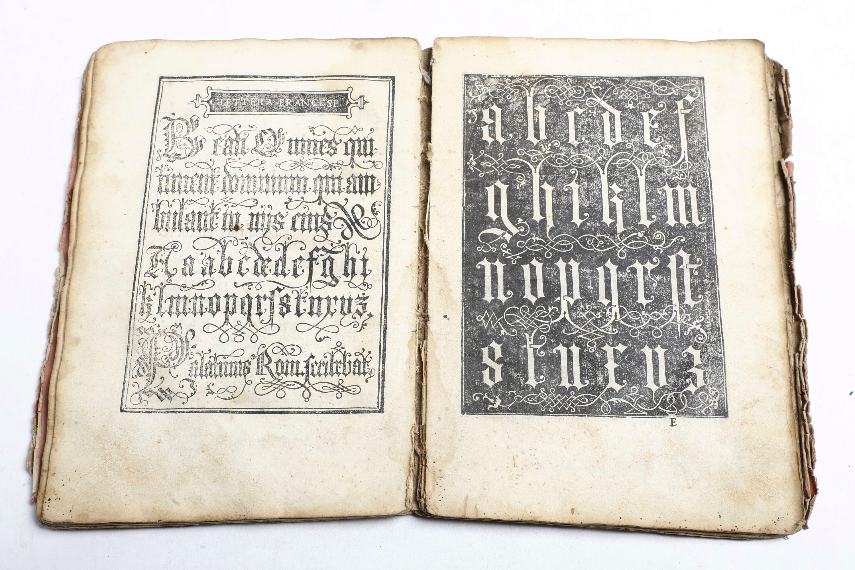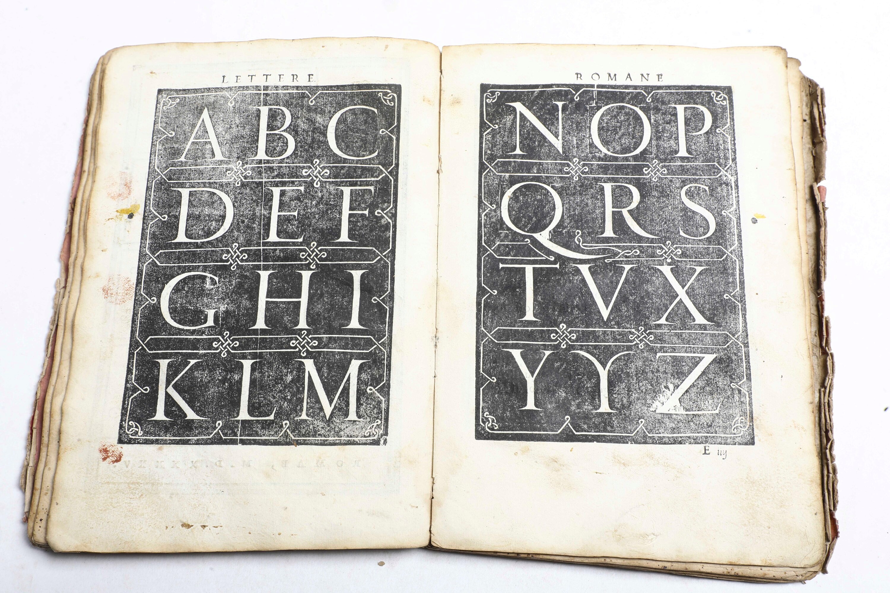 In-4°. Rilegatura in cartonato rustico, con rottura al dorso. Mancano almeno le prime tre carte e una carta interna (H1). Proposto come collezione di tavole calligrafiche