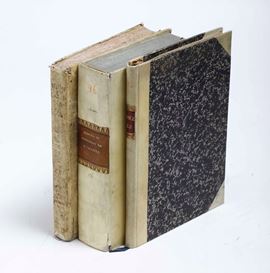 Tre voll. in-4°. Rispettivamente rilegatura coeva in pergamena floscia, rilegatura del XIX secolo in pergamena rigida, rilegatura del XIX secolo in mezza pergamena e punte, ex libris nobiliare al contropiatto