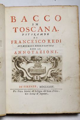 Redi Francesco (1626-1697) Bacco in Toscana.. In Firenze, per Pietro Matini, 1685