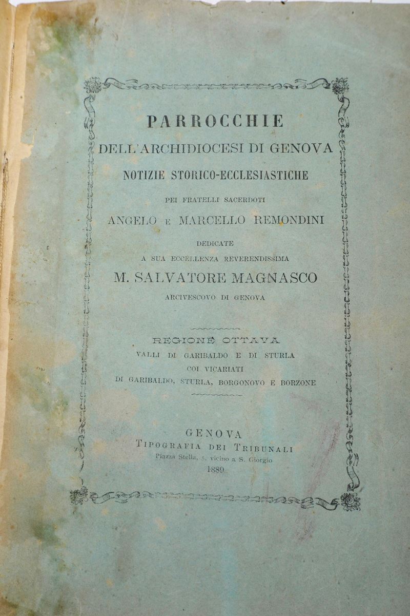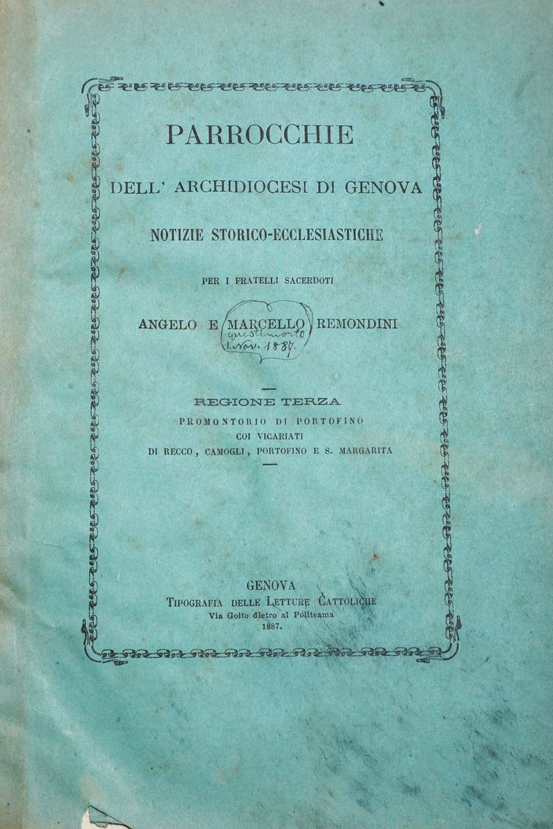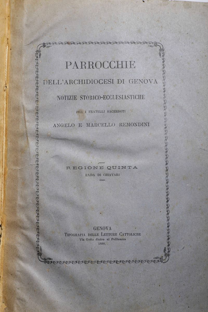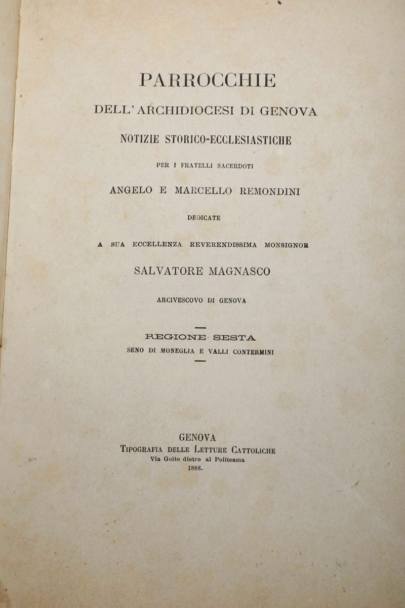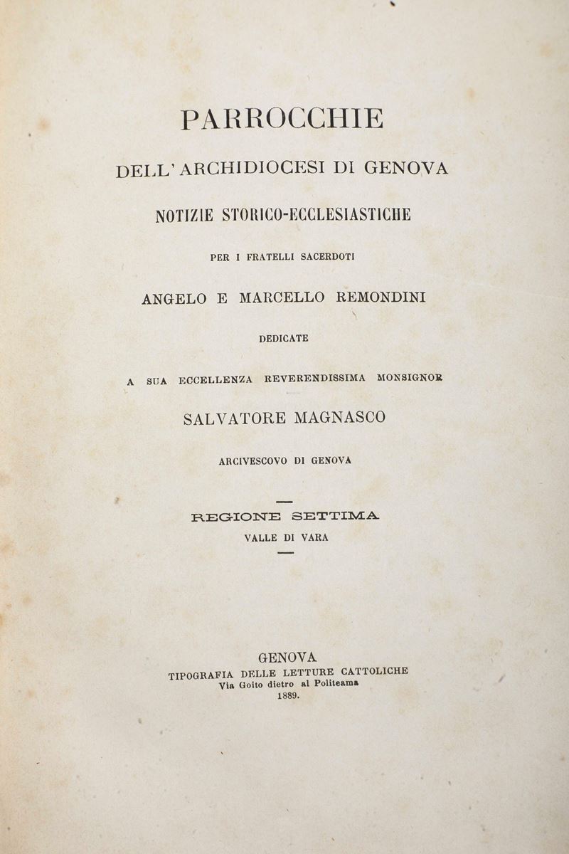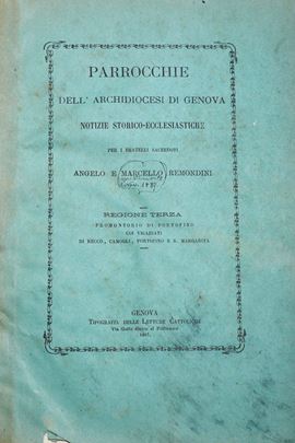 Remondini Angelo e Marcello Parrocchie dell'Arcidiocesi di Genova. Notizie storico- ecclesiastiche Genova, Tipografia delle [..]