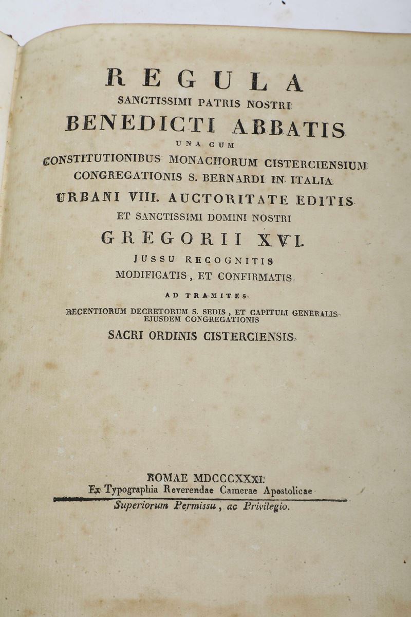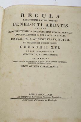 San Benedetto (480-547 d.C.) Regula sanctissimi patri nostri benedecti abbatis... Roma, ex typografia camerae apostolicae, [..]