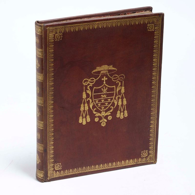 In-4°. Bella rilegatura coeva in pieno marocchino a grana lunga. Armi vescovili non identificate ai due piatti. Leggere bruniture e macchie, ma nel complesso esemplare genuino. Un quaderno parzialmente staccato.