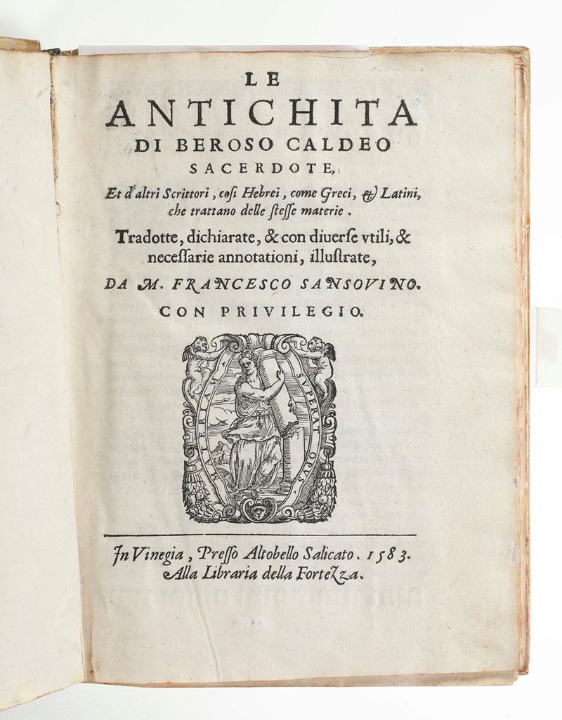 Sansovino Francesco (1521-1583) Le antichità di Beroso Caldeo Sacerdote In Vinegia, presso Altobello Salicato, 1583