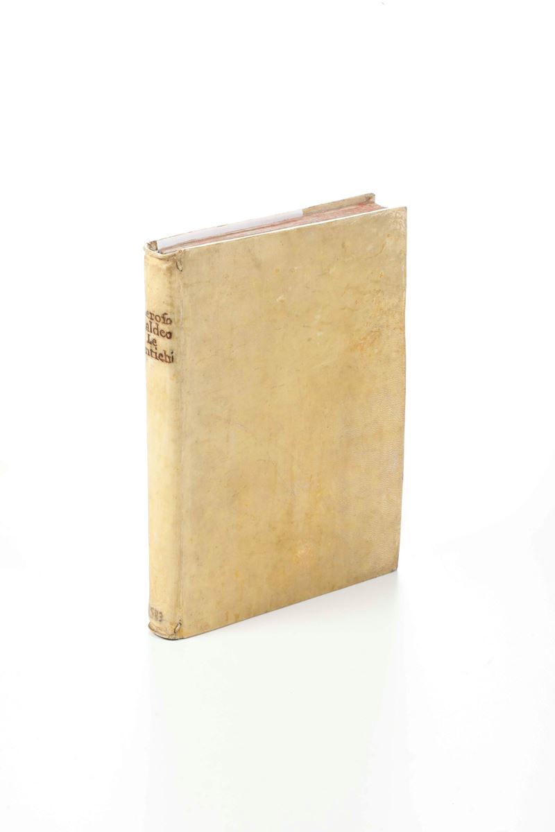 In-4°. (mm 210x152). Rilegatura del XVIII secolo in pergamena rigida, ex libris al contropiatto, tagli marmorizzati. Allegoria della Fortezza incisa al frontespizio, iniziali silografiche. Piccoli restauri e minime lievi gore agli angoli di alcune carte.