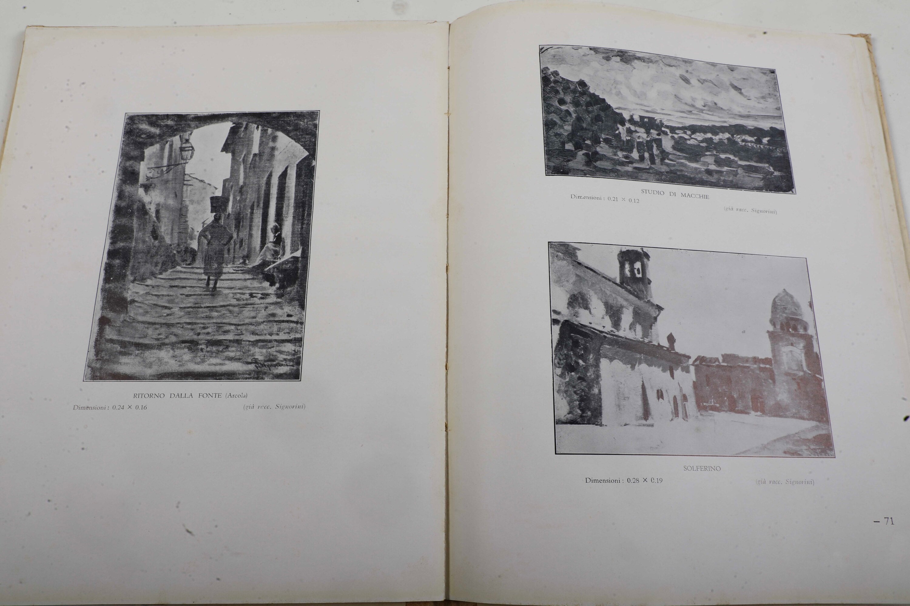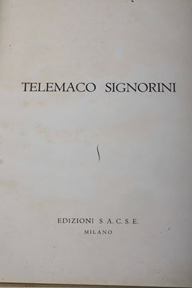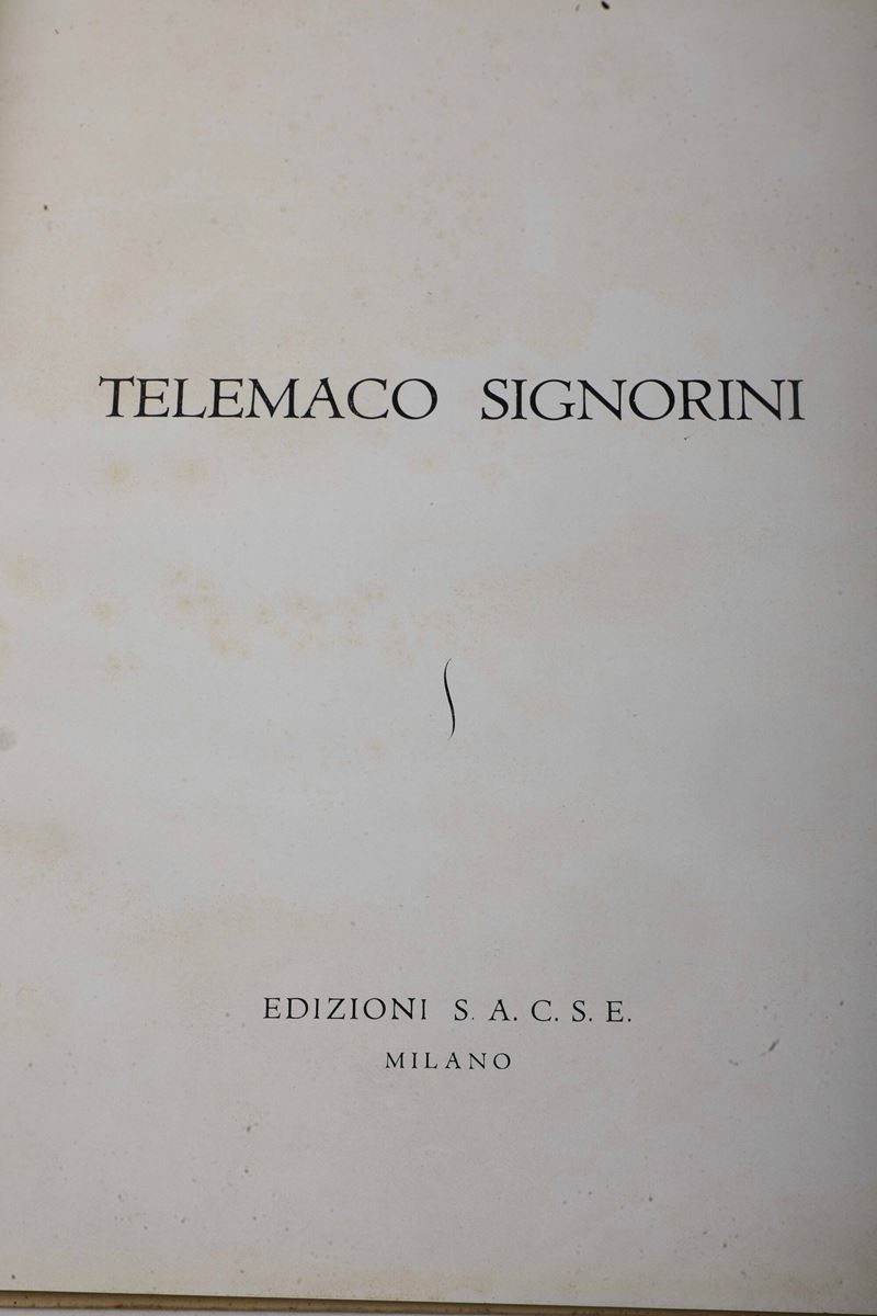 Si unisce nel lotto piccolo catalogo sulle opere di Telemaco Signorini, Milano, edizioni S.A.C.S.E., s.d.. Legatura editoriale in mezza tela. Foxing