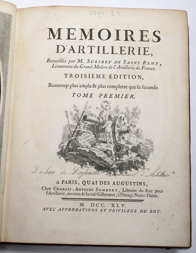 Surirey de Saint-Remy Pierre (1644-1716) Memoires d'artillerie.. A Paris, chez Charles-Antoine Jombert, 1745
