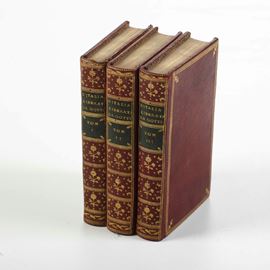 In-16°. 27 libri rilegati in tre tomi. Belle rilegature del secolo XVIII in marocchino rosso. Buon esemplare anche se un po' corto di margine. Ex libris ai contropiatti anteriori