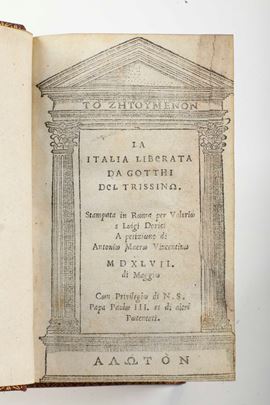 Trissino Gian Giorgio (1478-1550) La Italia liberata dai Gotthi... In Venezia, per Tolomeo Gianicolo da Brescia, 1548