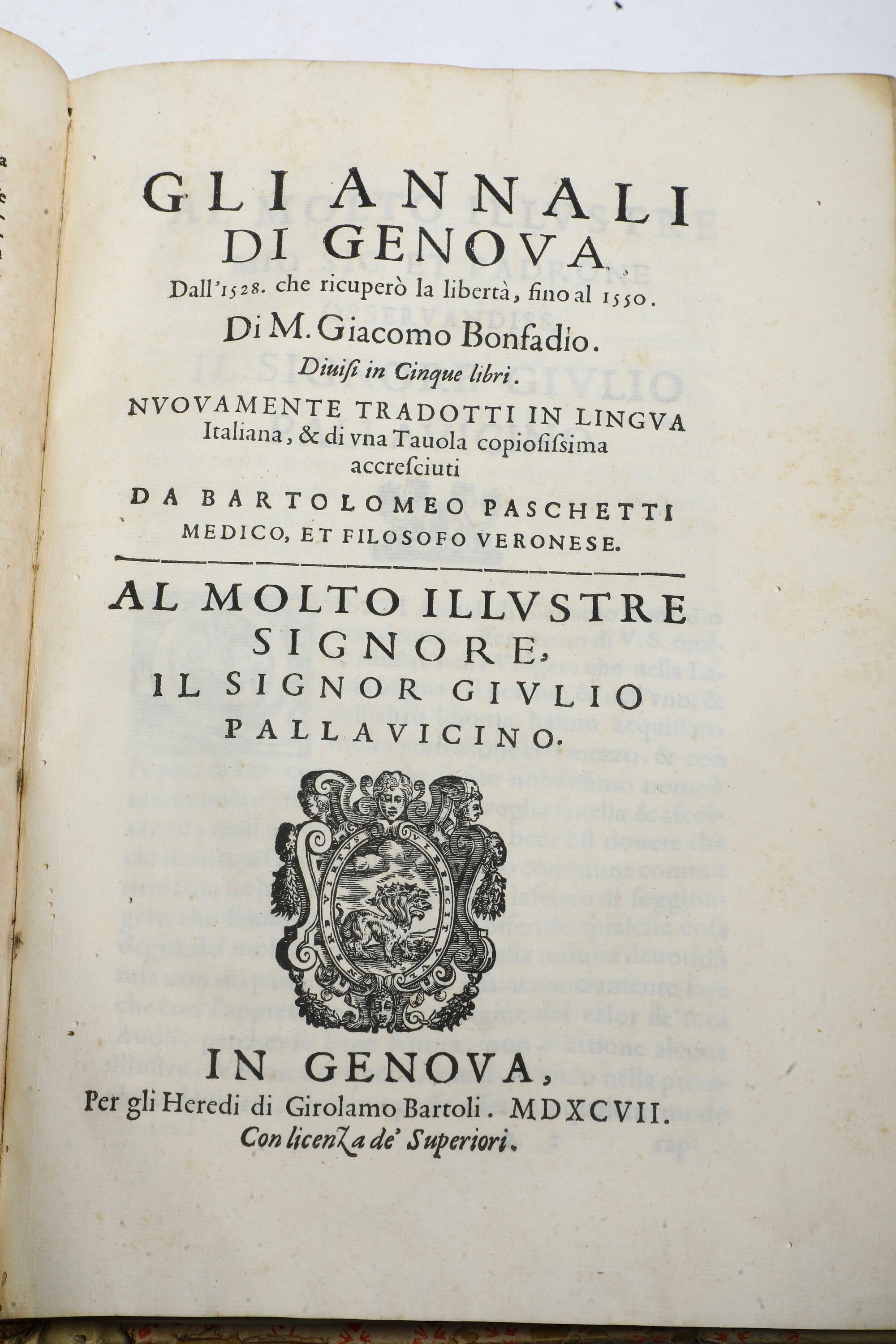 Uberto Foglietta (1518-1581) - Jacopo Bonfadio (1508-1550) Dell’Istorie di Genova.. Genova, Bartoli,1597 (unito in fine: [..]