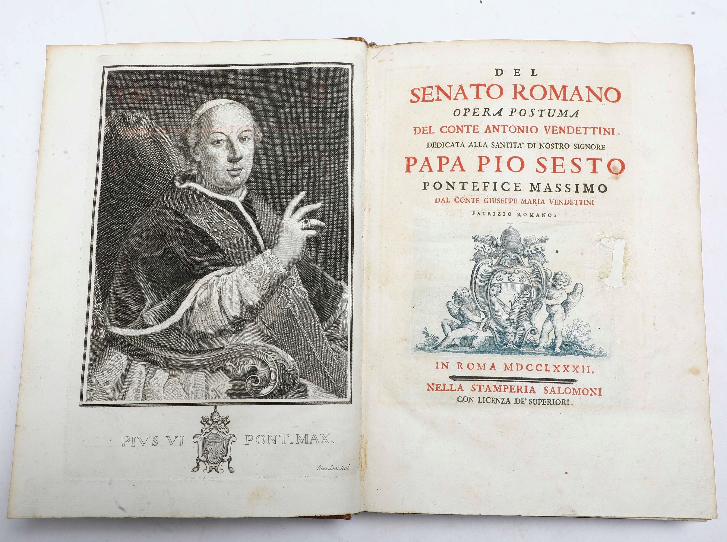 Vendettini Antonio (1704-1781) Del Senato Romano opera postuma del conte Antonio Vendettini... dedicata a papa Pio VI... [..]