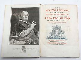 Vendettini Antonio (1704-1781) Del Senato Romano opera postuma del conte Antonio Vendettini... dedicata a papa Pio VI...