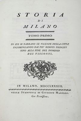 Verri Pietro (1728-1797) Storia di Milano... tomo I e II In Milano, nella stamperia di Giuseppe Marelli, 1783-1798