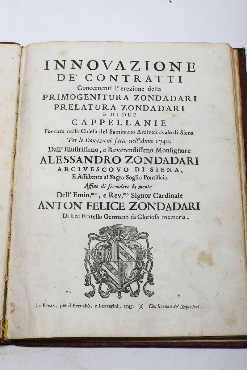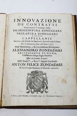 Zonadanari Alessandro (1669-1745) Innovazione dei contratti concernenti l'erezione di primogenitura.. In Roma, per il Bernabò [..]