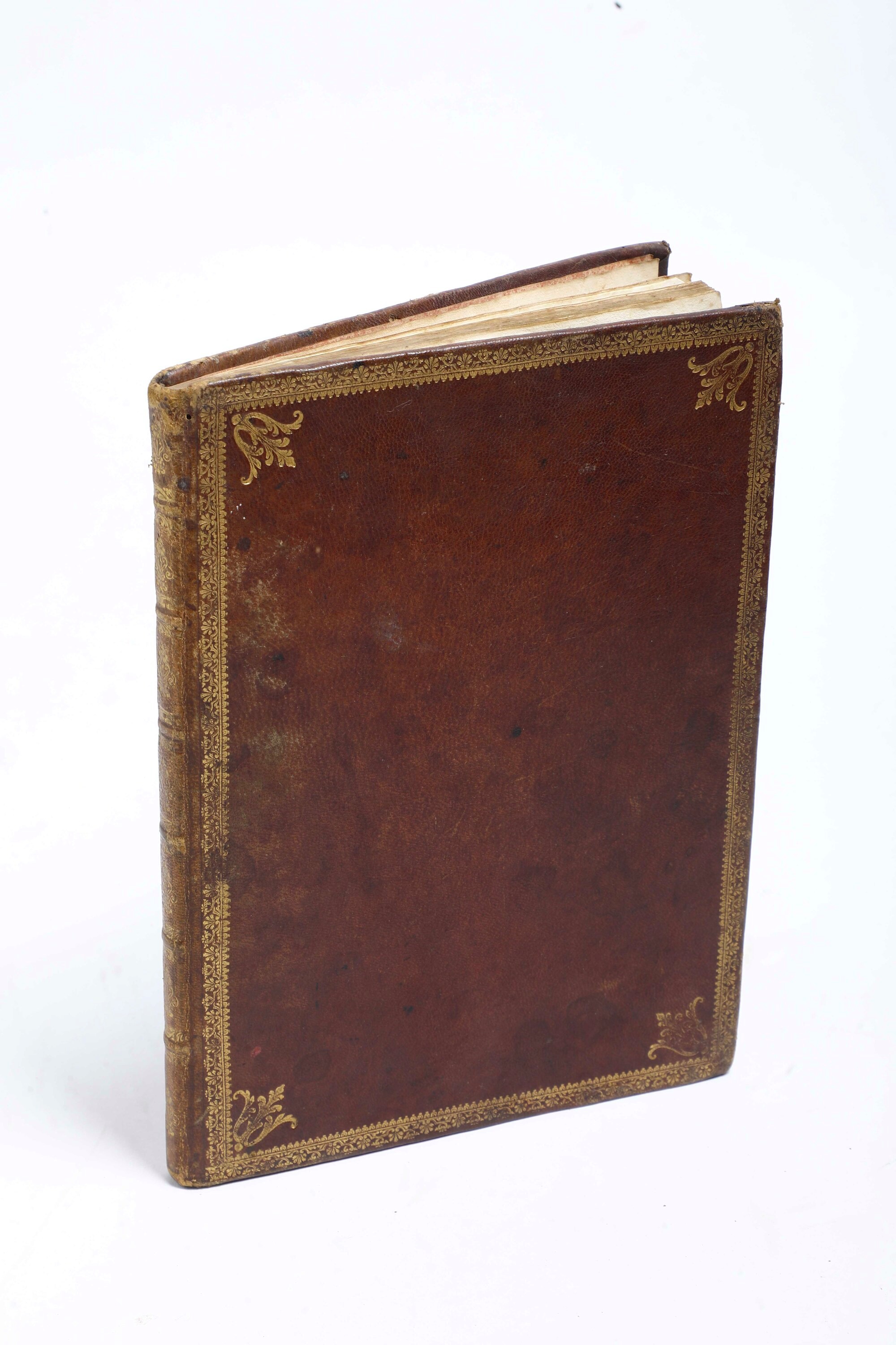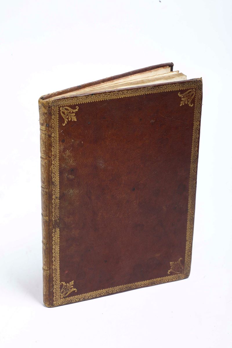 In-4° grande. (mm 270x194). Rilegatura in piena pelle del XVIII secolo con cornici floreali impresse in oro, ex libris nobiliare al contropiatto anteriore (usure). Bell'esemplare fresco