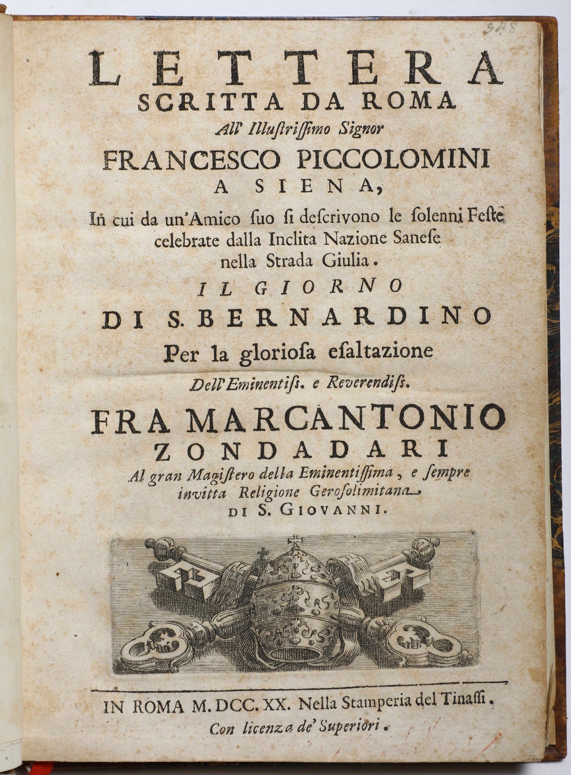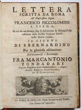 Zondanari Fra Marcantonio Lettera scritta da Roma all'Illustrissimo Signor Francesco Piccolomini.. In Roma, nella stamperia [..]