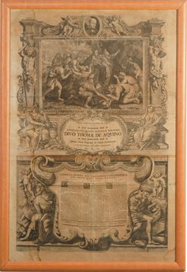 Cajetani Zenobii Grande stampa religiosa raffigurante episodi della vita di San Tommaso d'Aquino, 1718