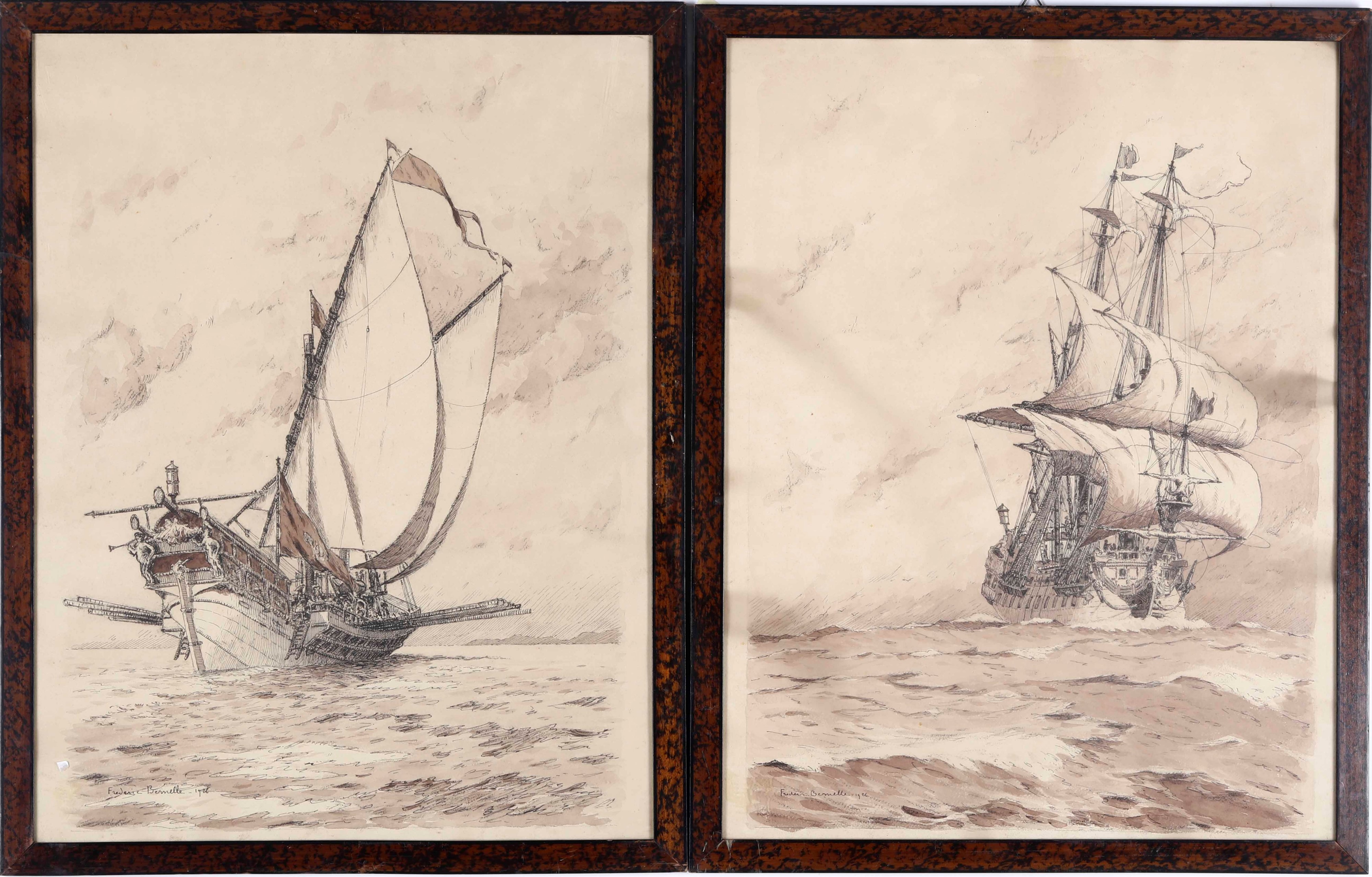 Frederic Bernelle Due disegni di galeoni, 1926