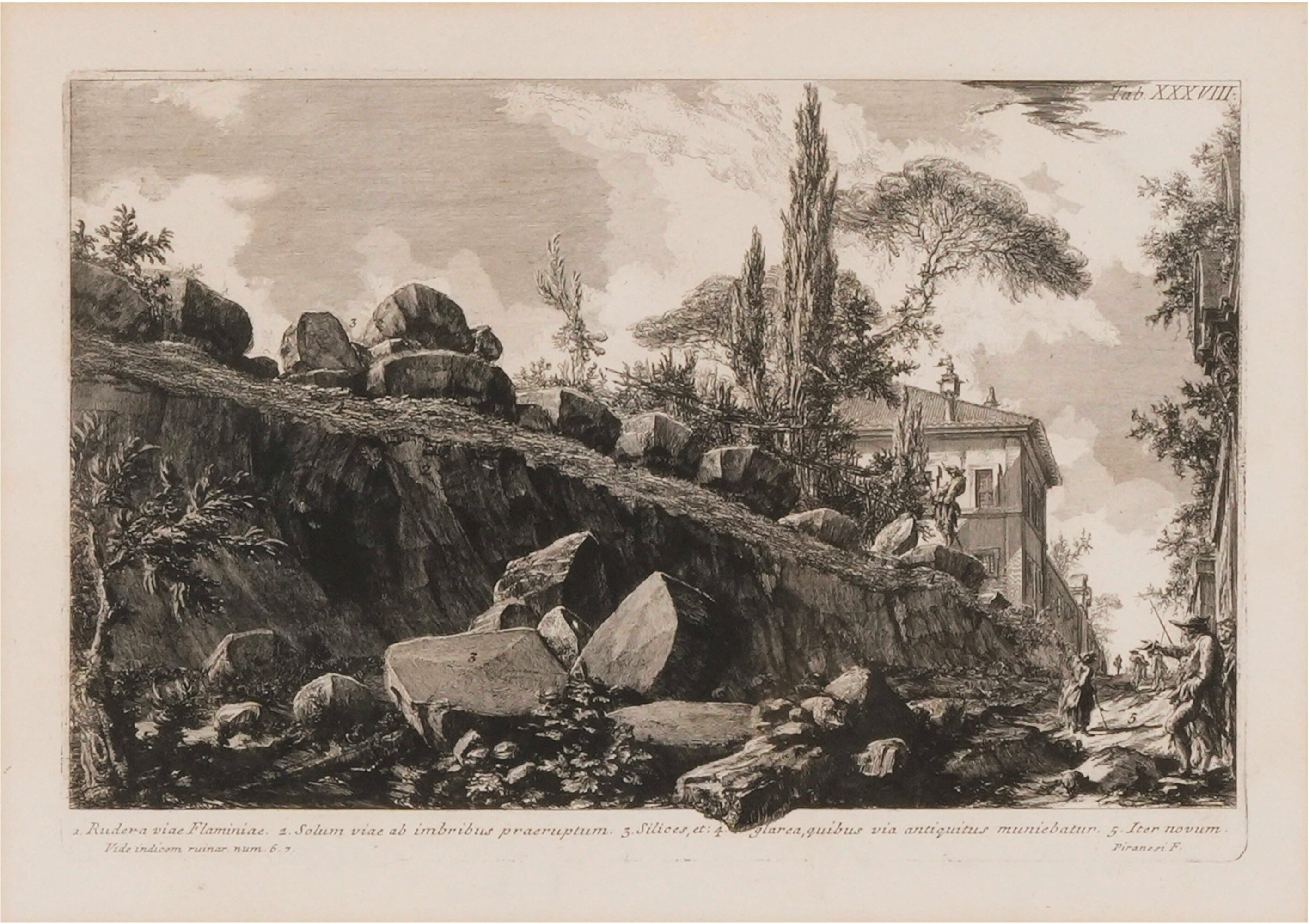 Acquaforte riproducente le rovine sulla Via Flaminia. Dimensioni: foglio 28x39,5; cornice 56x76