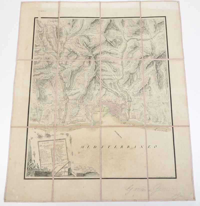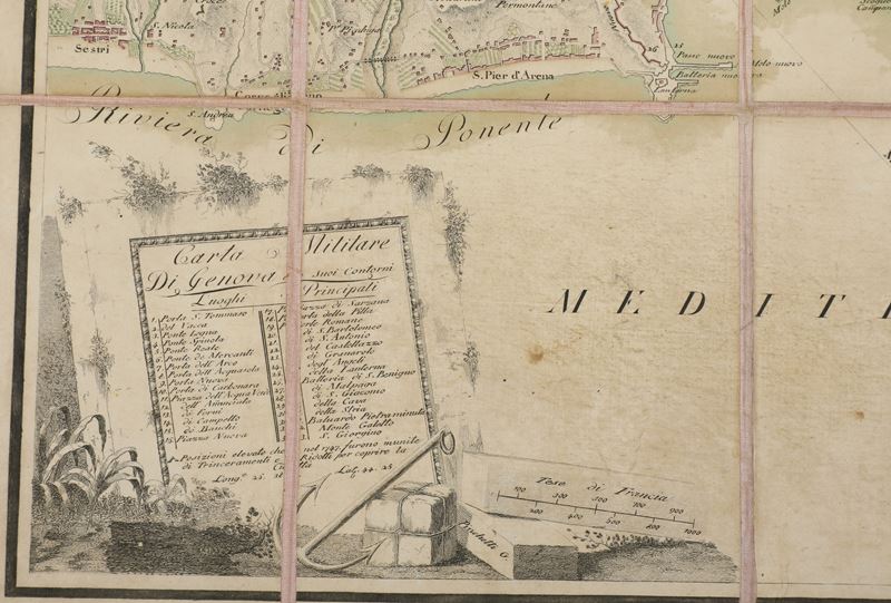 Giuseppe Pinchetti / Giuseppe Canani Carta militare di Genova e suoi contorni e luoghi principali, 1830 circa.