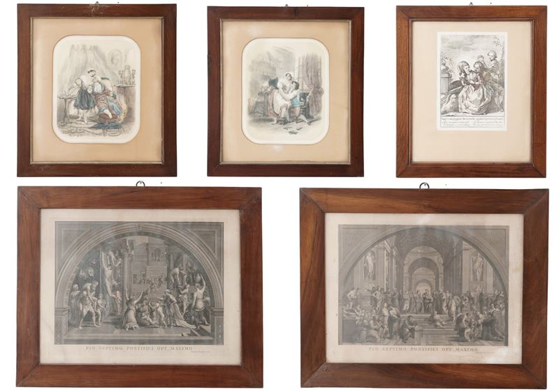 Riproduzione degli affreschi raffaelleschi de "L'incendio di Borgo" e "La Scuola d'Atene" e alcune scene galanti