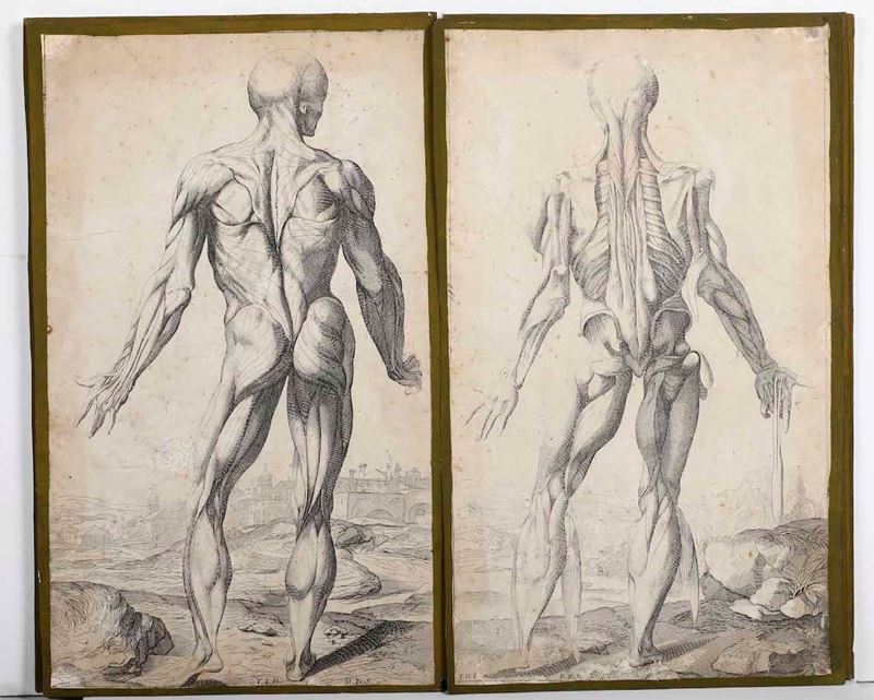 Dodici incisioni tratte dalle Notomie di Tiziano. Dimensioni: 22x36 cm