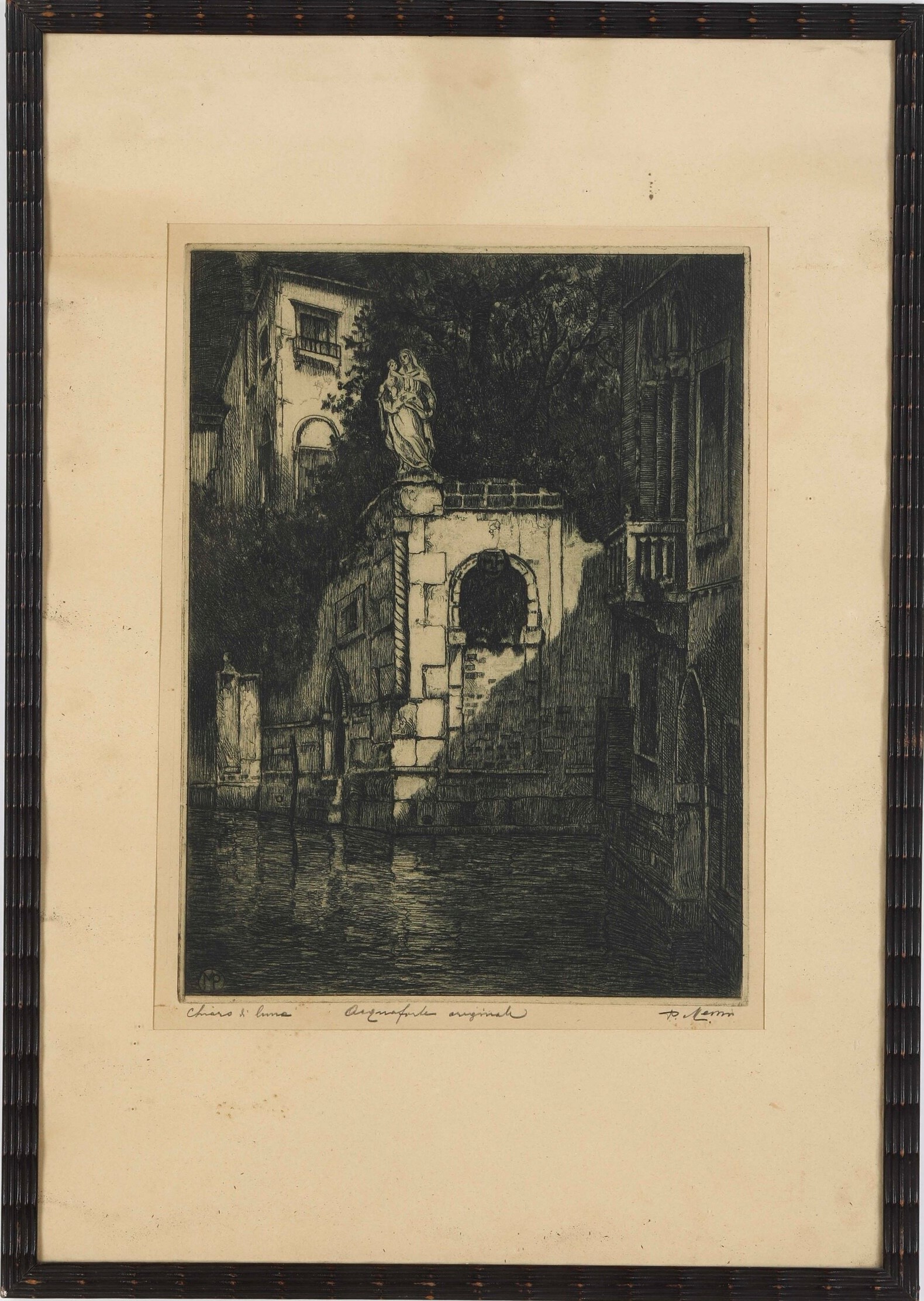 Acquaforte. Titolo, tecnica e firma a matita in basso e siglata su lastra. Entro cornice.